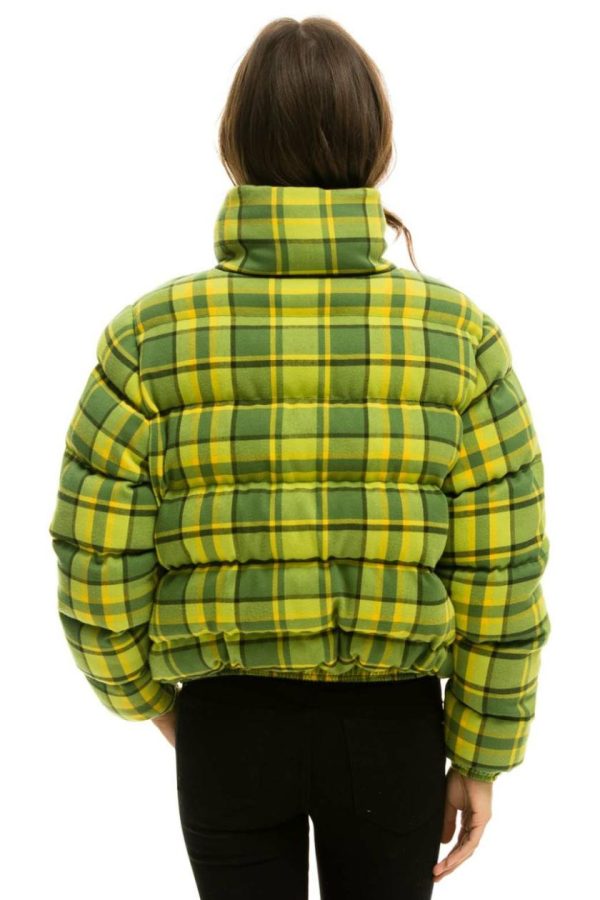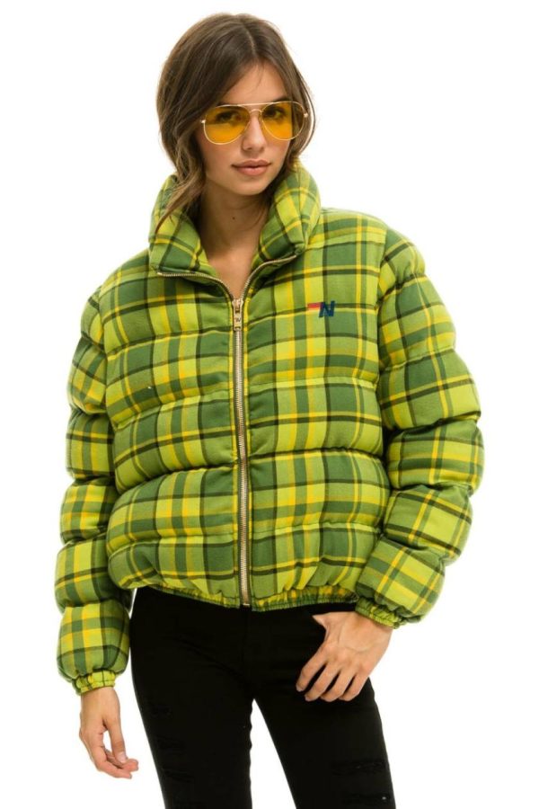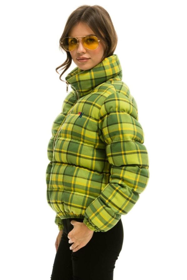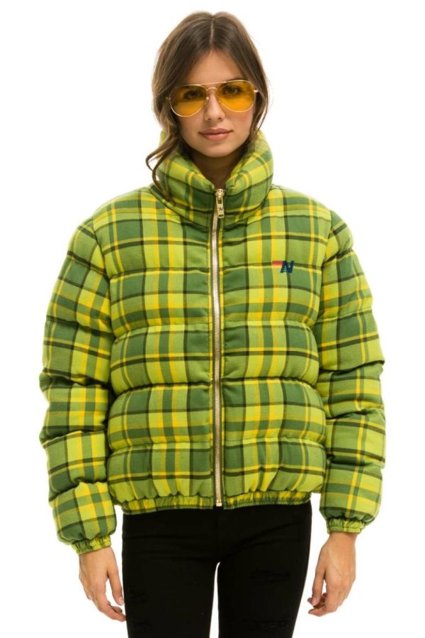 APRES PLAID PUFFER JACKET AVOCADO PLAID | Women Aviator Nation PLAID