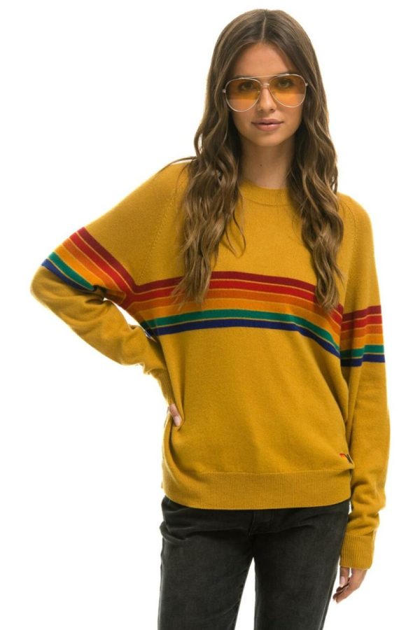 RAINBOW STRIPE UNISEX LIGHT CASHMERE SWEATER HARVEST | Women Aviator Nation Cashmere