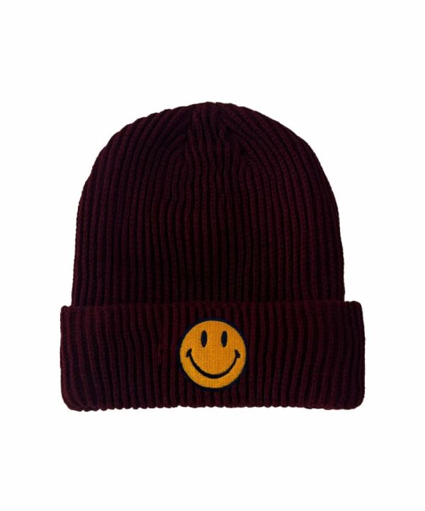 SMILEY RIB BEANIE BURGANDY | Women Aviator Nation Beanies quantity